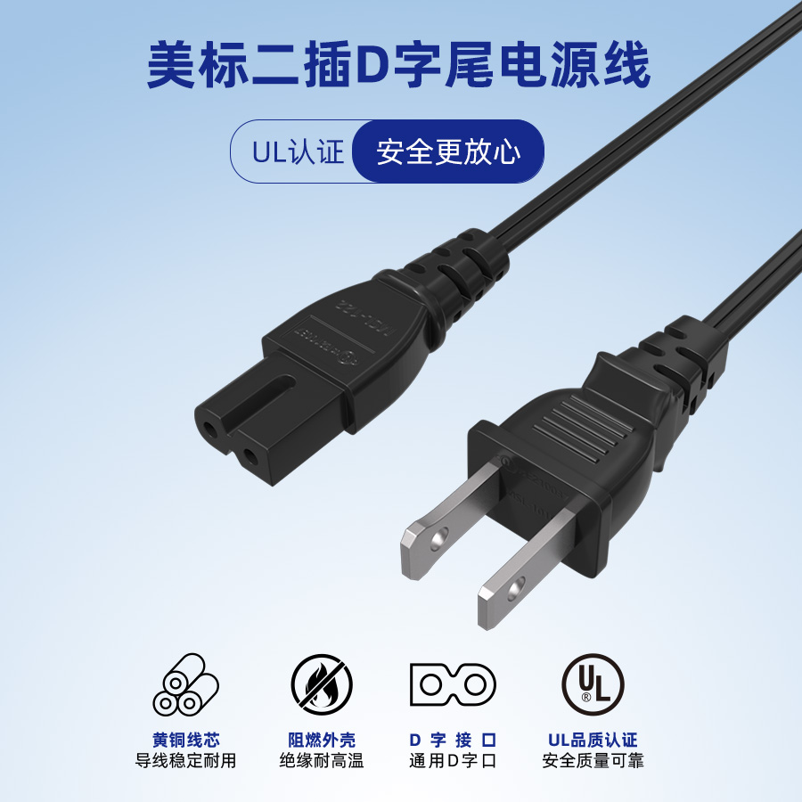 MSL电源线FP225-00美标D字尾电源线两孔插尾设计,稳定不易松动,安全有保障。FP225-00电源线采用加粗铜芯电阻小发热低,PVC阻燃外被,传输性能稳定,满足各种场景需求,D字尾接口设备都能使用,如台灯、音响、显示器、打印机、数码相机、电源适配器等。
