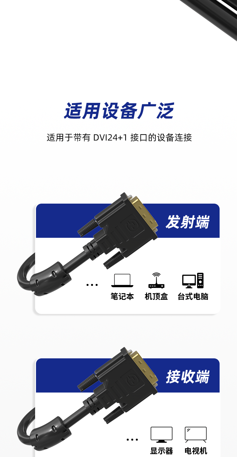 适用广泛:适用于带有DVI24+1接口的设备连接