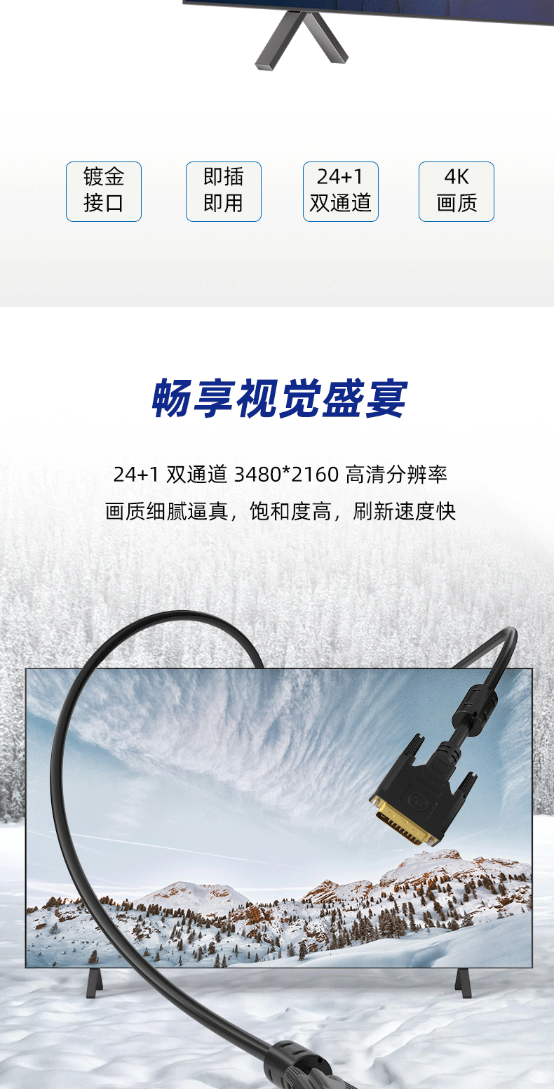 耐插拔:接口采用镀金工艺,耐腐蚀抗氧化,长久使用信号依旧稳定传输