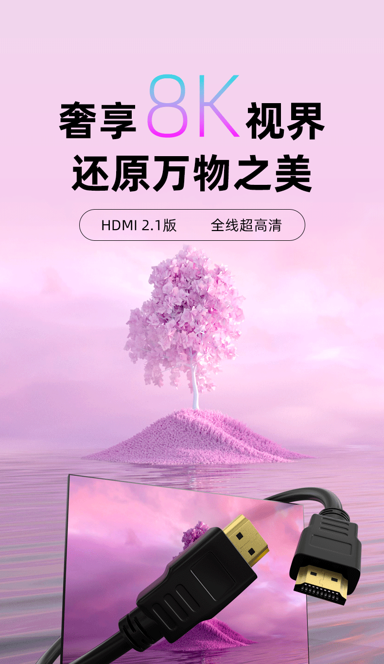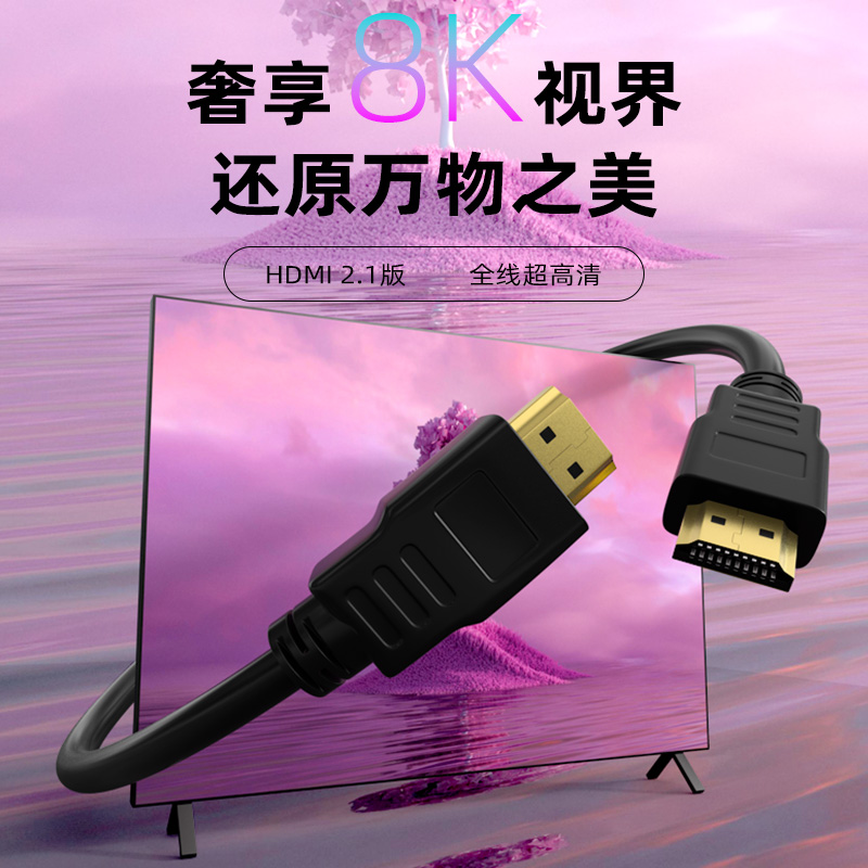 音视频线:HMDI2.1版本,支持8K@60HZ高清分辨率@刷新率,18Gbps带宽和HDR显示, 音视频同步输出,无需手动调整,畅享有声视界。