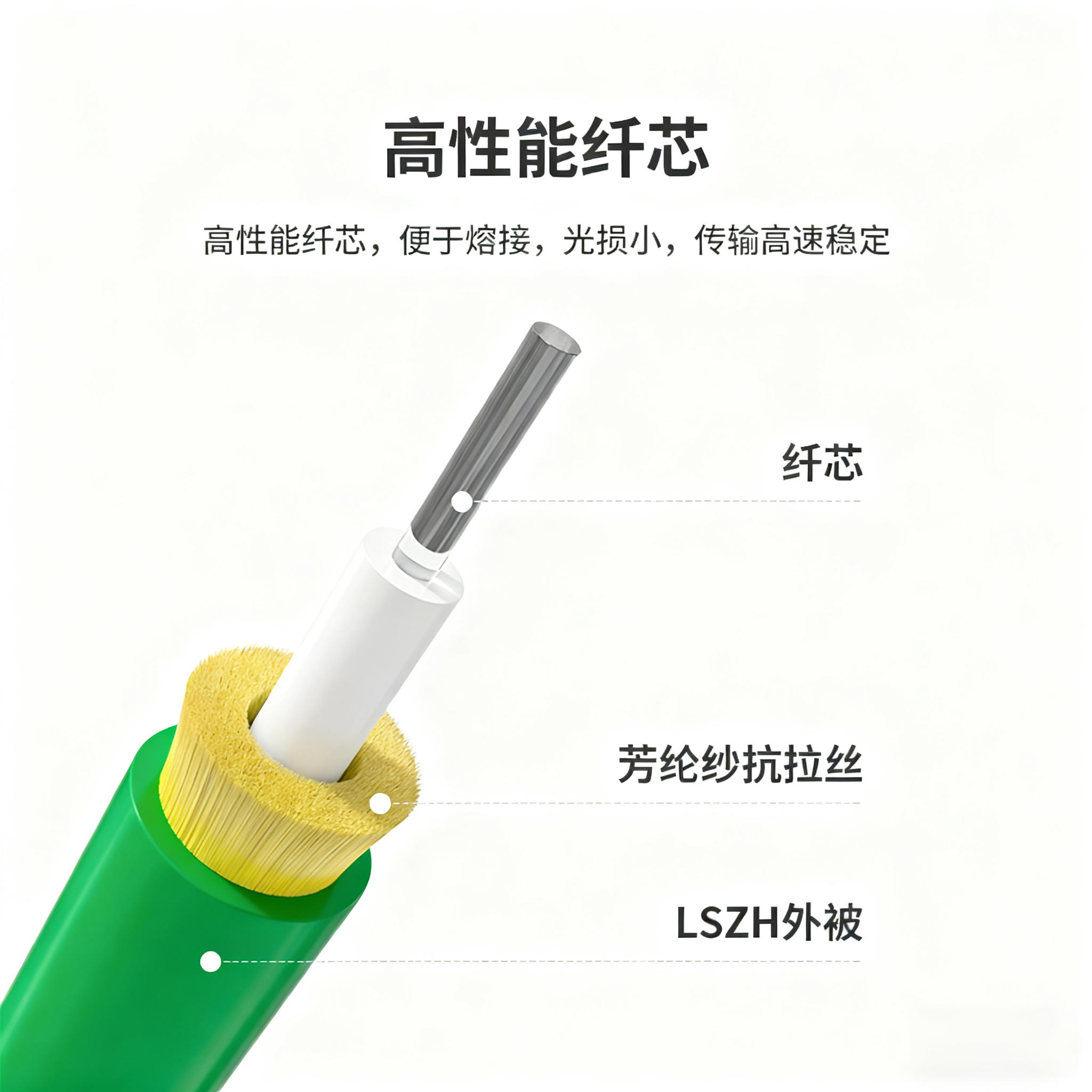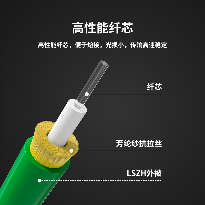环保材料:高性能纤芯,高品质跳线接头,光损小,传输高速稳定。