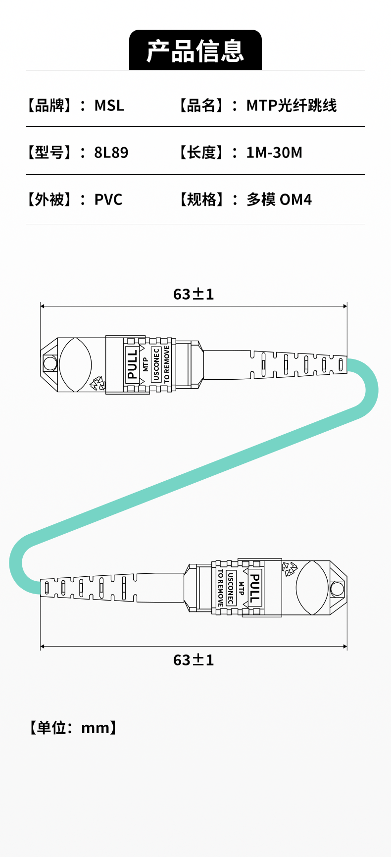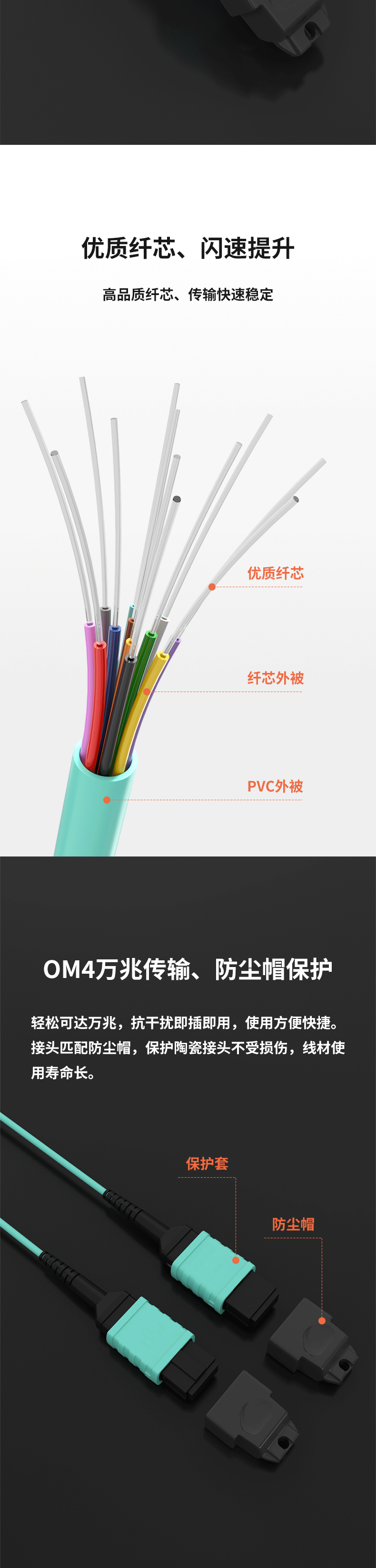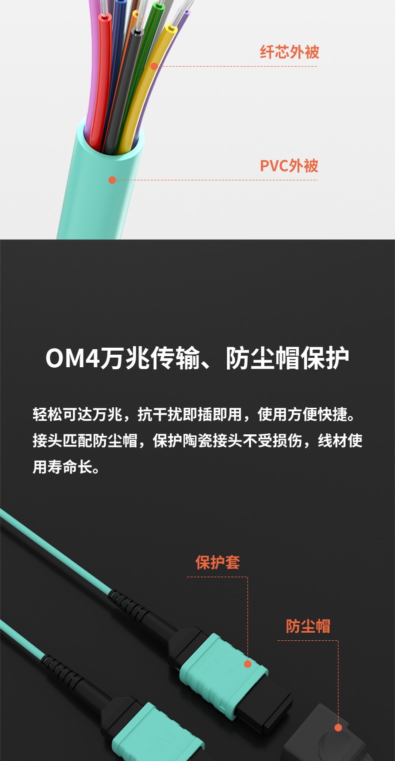 MTP接口:采用12芯MTP-MTP接头设计,兼容性广泛,适用于多种网络和设备连接。