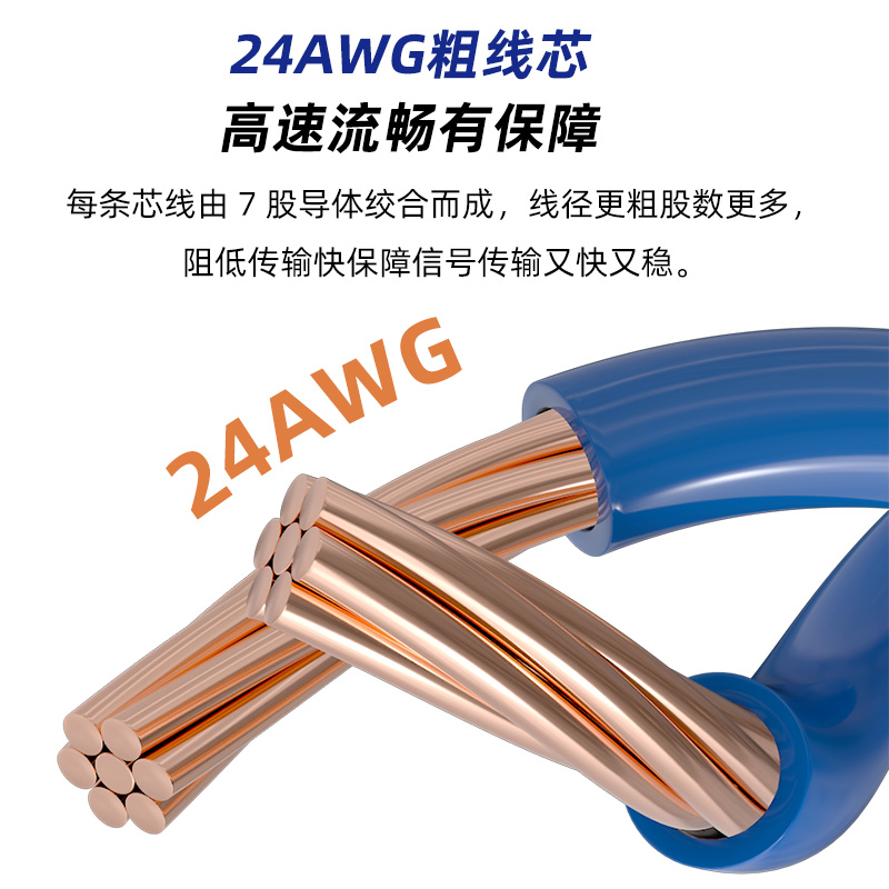 优质材料:采用纯铜导体线芯,线规24AWG、OD6.2,具备良好的导电性能和耐用性。