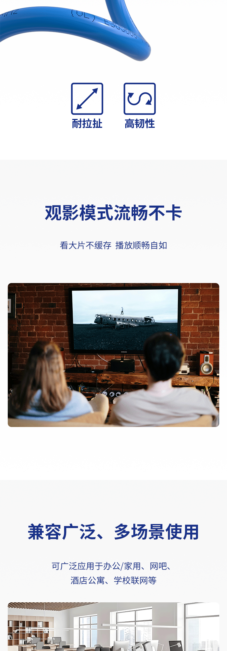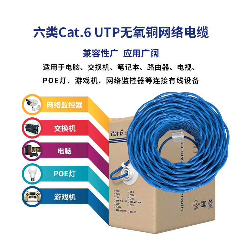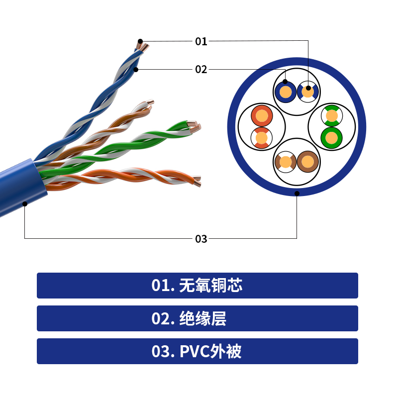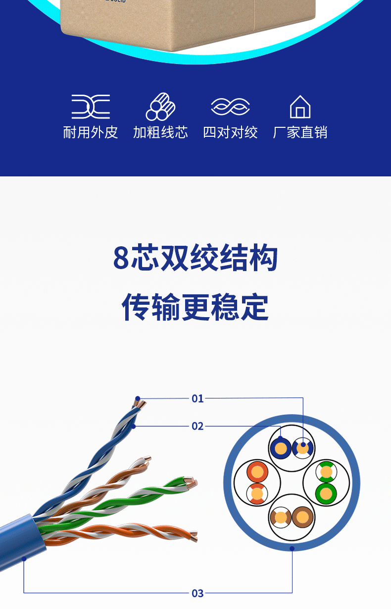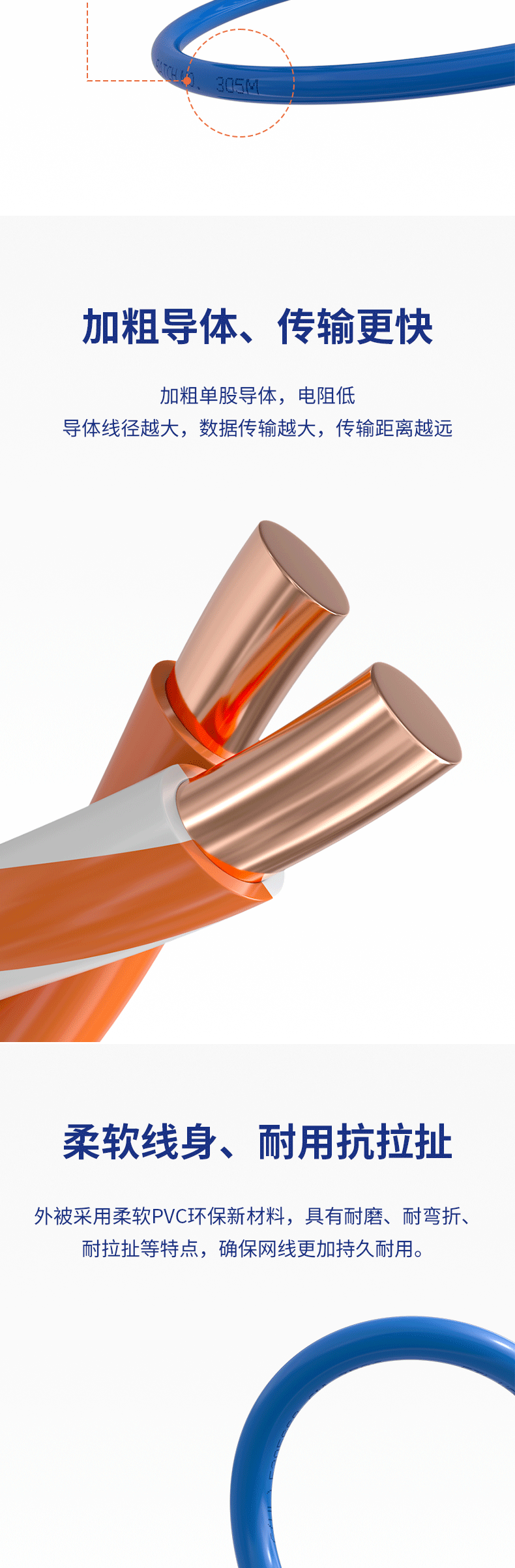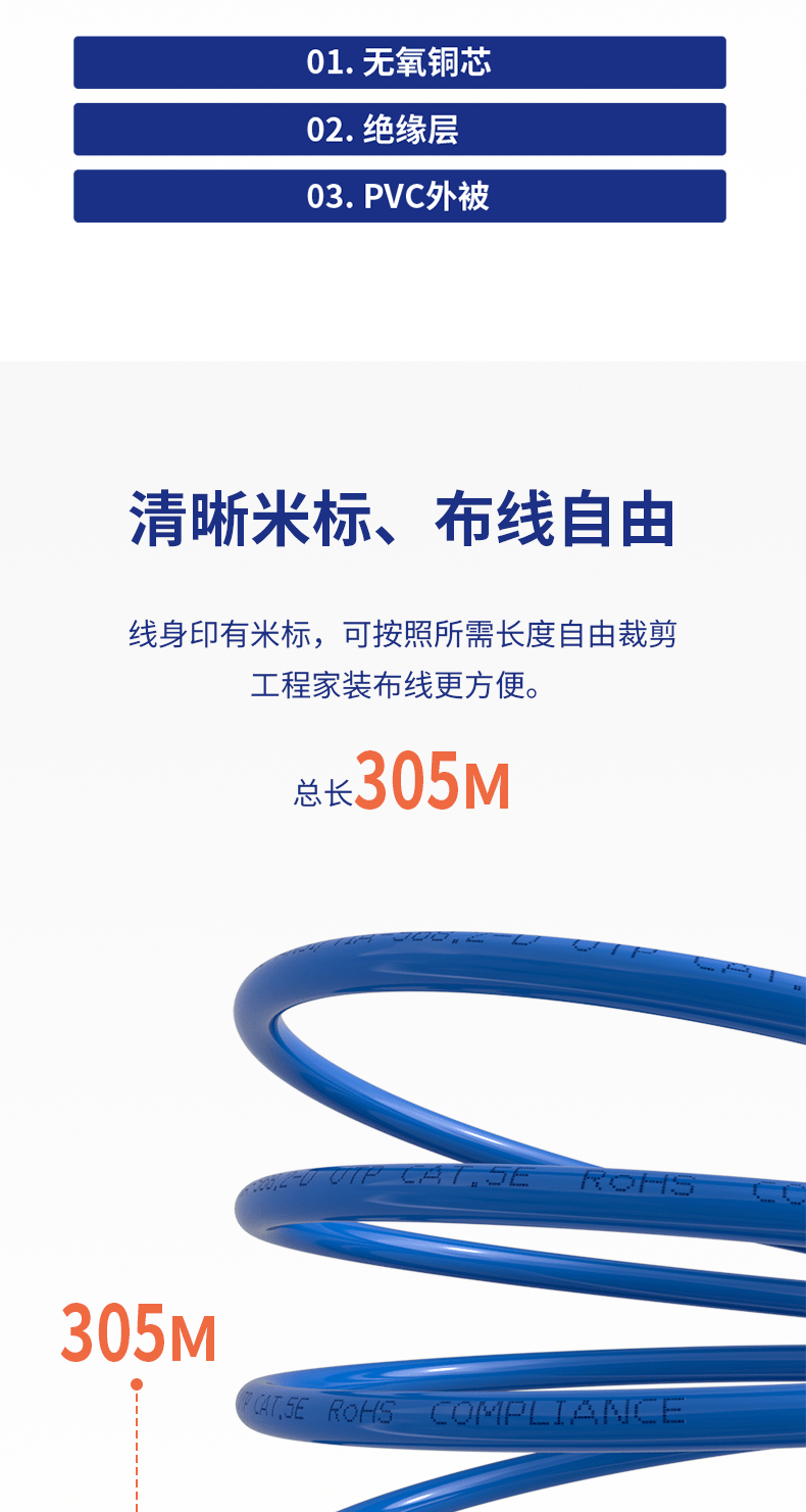 工程装修专用:MSL超五类千兆网线采用纯铜线芯,8芯双胶结构,可过福禄克测试,工程装修更合适。