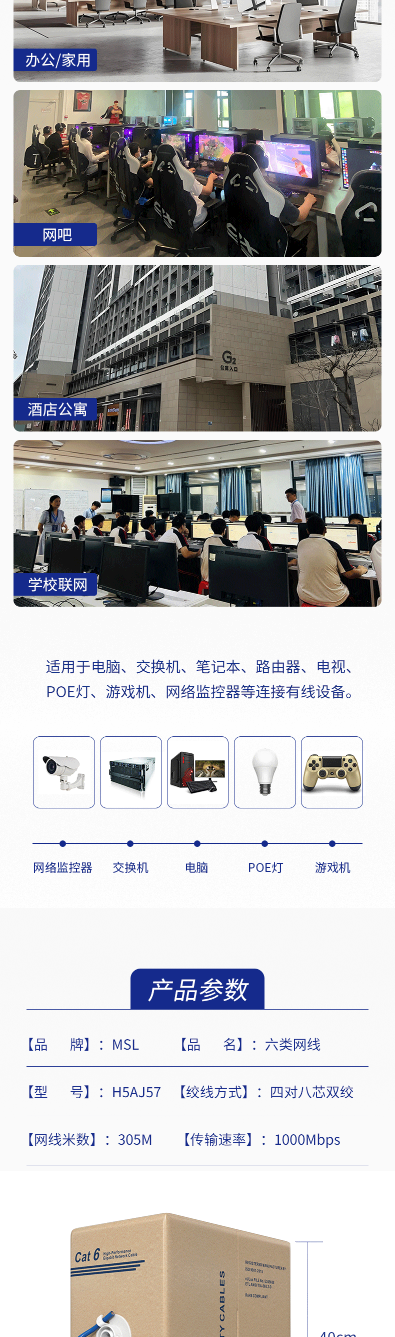 随意长度:MSL六类网线装修线配专用RJ45水晶头,305米箱线可自由选择长度,布线安装更方便