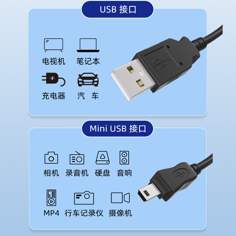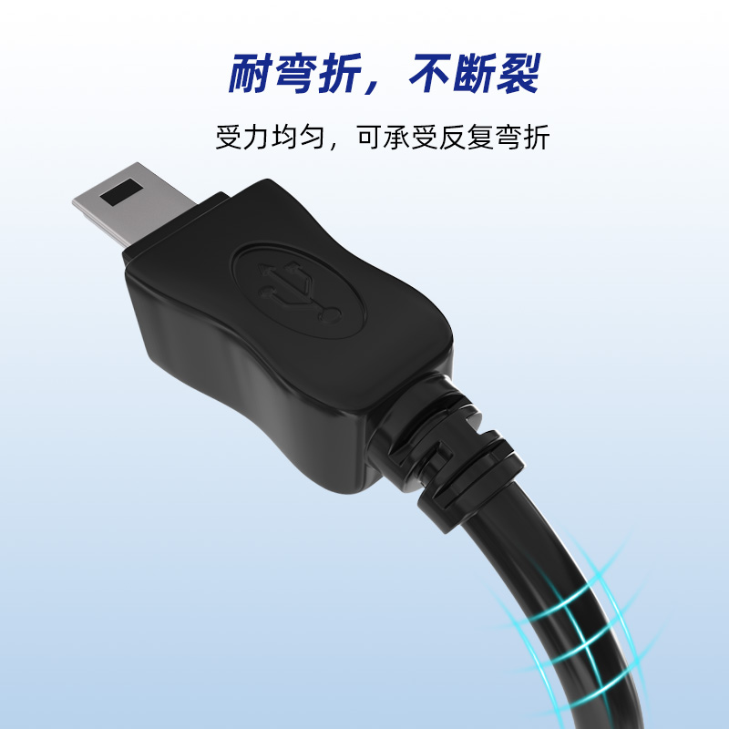 充电+传输:适用于USB转Mini接口快充,稳定输出充电/数据传输同步进行,