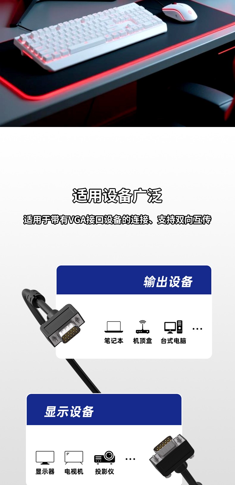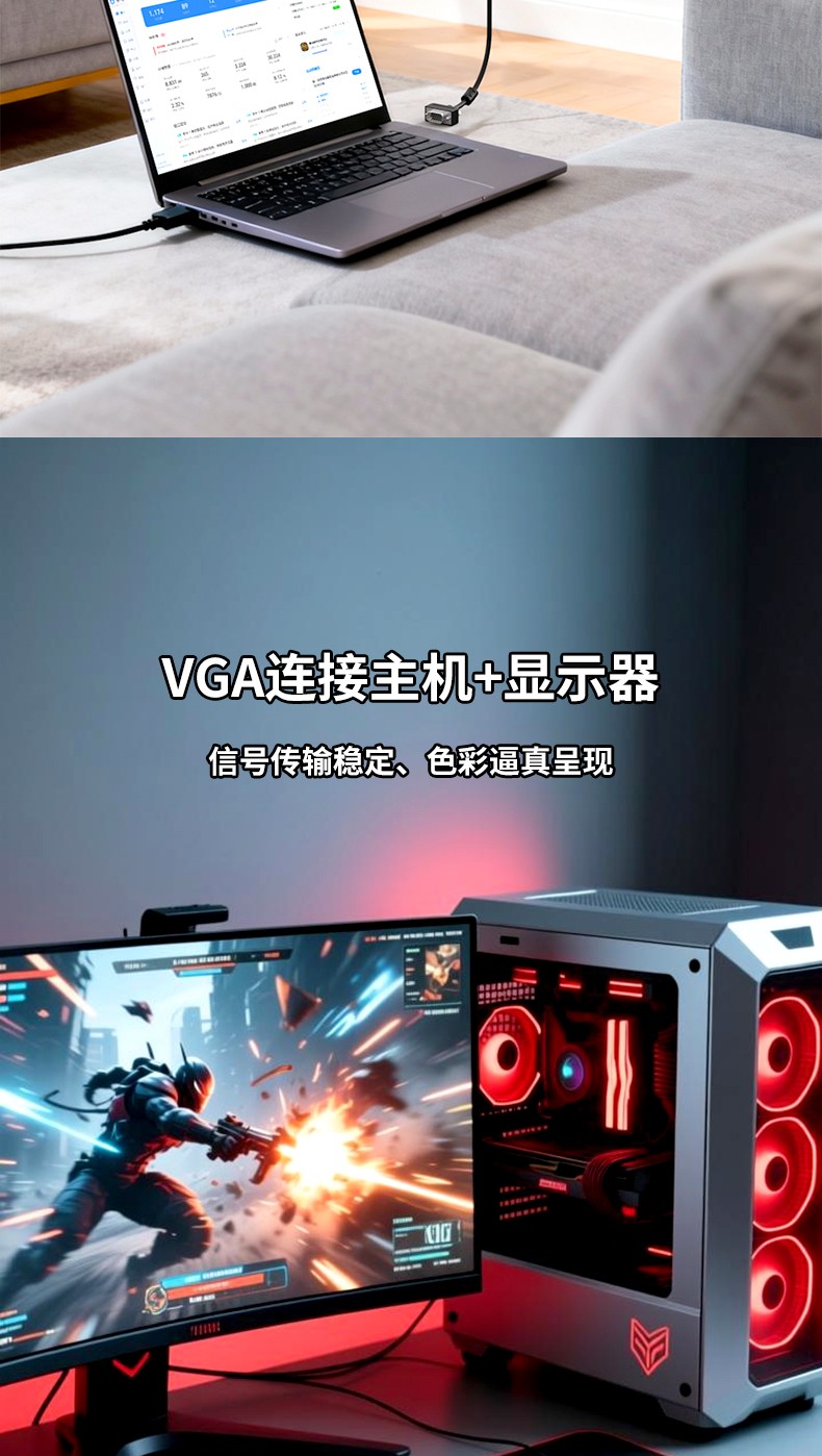 适用广泛:适用于带有VGA接口的设备连接,支持双向互传