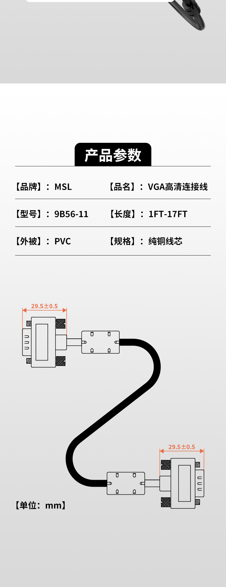 MSL高清VGA信号线9B56-11是一款适用于家庭和工程使用的高性能VGA连接线。9B56-11信号线采用铁壳镀金3+9无氧铜芯,画质细腻逼真,饱和度高,刷新速度快。采用加厚金属接口,耐腐蚀抗氧化,长久使用信号依旧稳定传输,适用于带有VGA接口的设备连接。