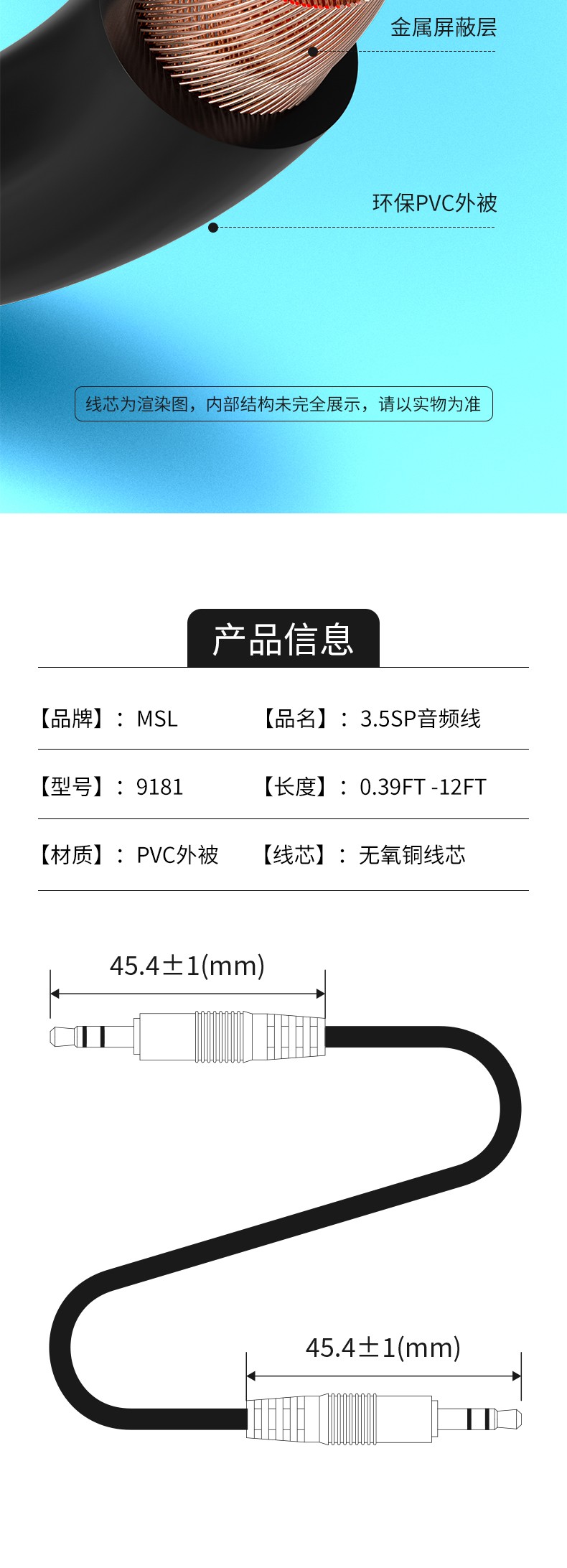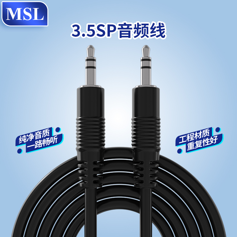 MSL音频线3.5SP-3.5SP公对公车载电脑手机耳机音响转换连接线,支持双向互传,高保真设计音色纯净,无氧铜线芯材质加金属屏蔽层无杂音、无电流声,环保PVC材质柔软耐磨耐折弯,3.5mm接口设备通用,适用于手机、电脑、MP3、头戴式耳机、汽车音响等音频连接 。